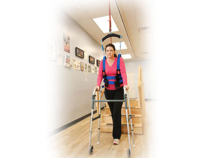 The ZeroG Gait and Balance Training System protects patients from falls while providing dynamic body-weight support as patients practice walking, balance tasks, sit-to-stand maneuvers and even stairs. Because ZeroG is mounted to an overhead track, ther …