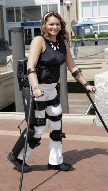 Ekso™ is a wearable bionic suit which enables individuals with any amount of lower extremity weakness to stand up and walk over ground with a natural, full weight bearing, reciprocal gait. Walking is achieved by the user’s weight shifts to activate sen …