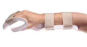 Hand positioning for post-stroke patients, thumb in full opposition, wrist in 30° dorsiflexion, and MP joints at approximately 80°. Made of adjustable thermoplastic. Choose the traditional splint with strap kit included, or select the splint that comes with a comfort-enhancing AliFleece™ Liner. Includes wrist straps that secure in a figure-eight for firm, comfortable hold.