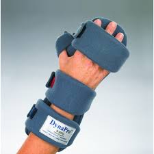 The DynaPro Resting Hand (Thumb Ease) is a resting hand design with a thermoplastic insert that is heat molded approximately 15 to 30 degrees “ahead” of comfortable end range stretch at the wrist (i.e., with wrist contracture of 45 degrees, the insert is heat molded to – 30 to -15° degrees). The finger pan should be heat molded to maintain the fingers in optimal extension. When applied, the flexible insert will “flex” into the wrist contracture applying a therapeutic, inhibiting stretch on the shortened tissue at the wrist. The gentle tension applied by the correctly heat molded insert will provide abnormal reflex arc therapy to reduce abnormal tone over time as well as lengthening shortened tissue. The device should be modified by heat molding the insert every 6 to 8 weeks to continue contracture reversal (i.e., when the wrist improves from – 45 to -30, the insert must be heat molded to – 15 to neutral to continue the “flex” therapy). By increasing wearing time to three to six hours per use, the Total End Range Time (TERT) of device wear provides long effects stretch and permanent increases in joint range of motion over time. Orthotic treatment should be continued until function is restored to the affected hand.
