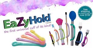 The EazyHold universal cuff grip assist is an affordable general use strap that helps people accomplish daily living activities independently despite physical conditions or disabilities impacting grip strength. The flexible universal cuffs attach securely to get a grip on handles of utensils, tools, toys and more! The adaptable assistive device is made of soft, flexible food-grade silicone, hypoallergenic and latex free. Eazy to use, Eazy to clean and Eazy on the hands!