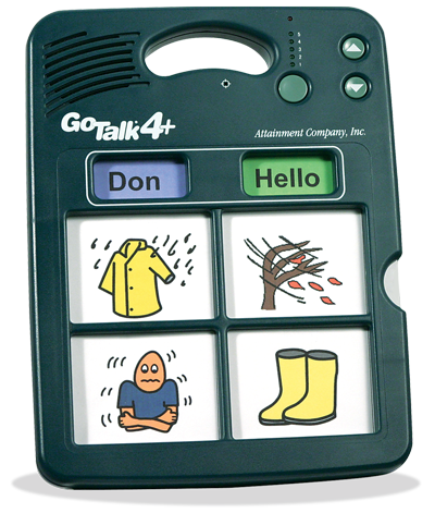 GoTalk 4= is lightweight and rugged, like all GoTalks, and has 22 messages, 5 recording levels and large message keys for easy access. Plus, there are two core vocabulary messages that remain constant when you change levels, great for essentials, like Hello or All done.