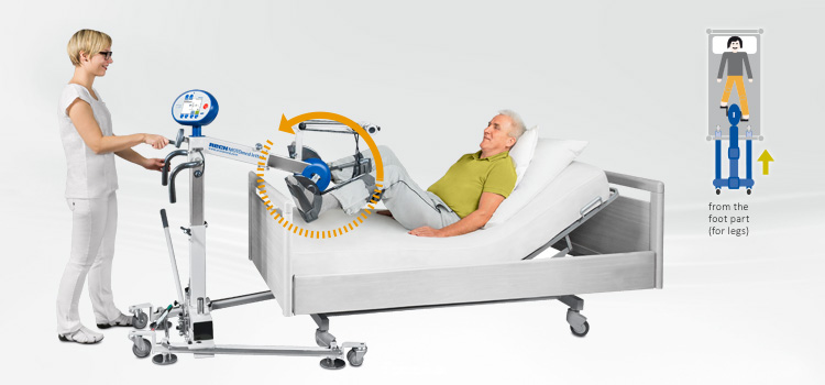The MOTOmed letto2 helps to balance lack of movement in patients confined to bed. Patients can use the MOTOmed letto2 to train in a passive, motor-assisted, and active mode, from a hospital bed or a therapy chair. The MOTOmed letto2 provides a well-rounded therapy to patients in stationary care. It can also be effectively applied in home care.