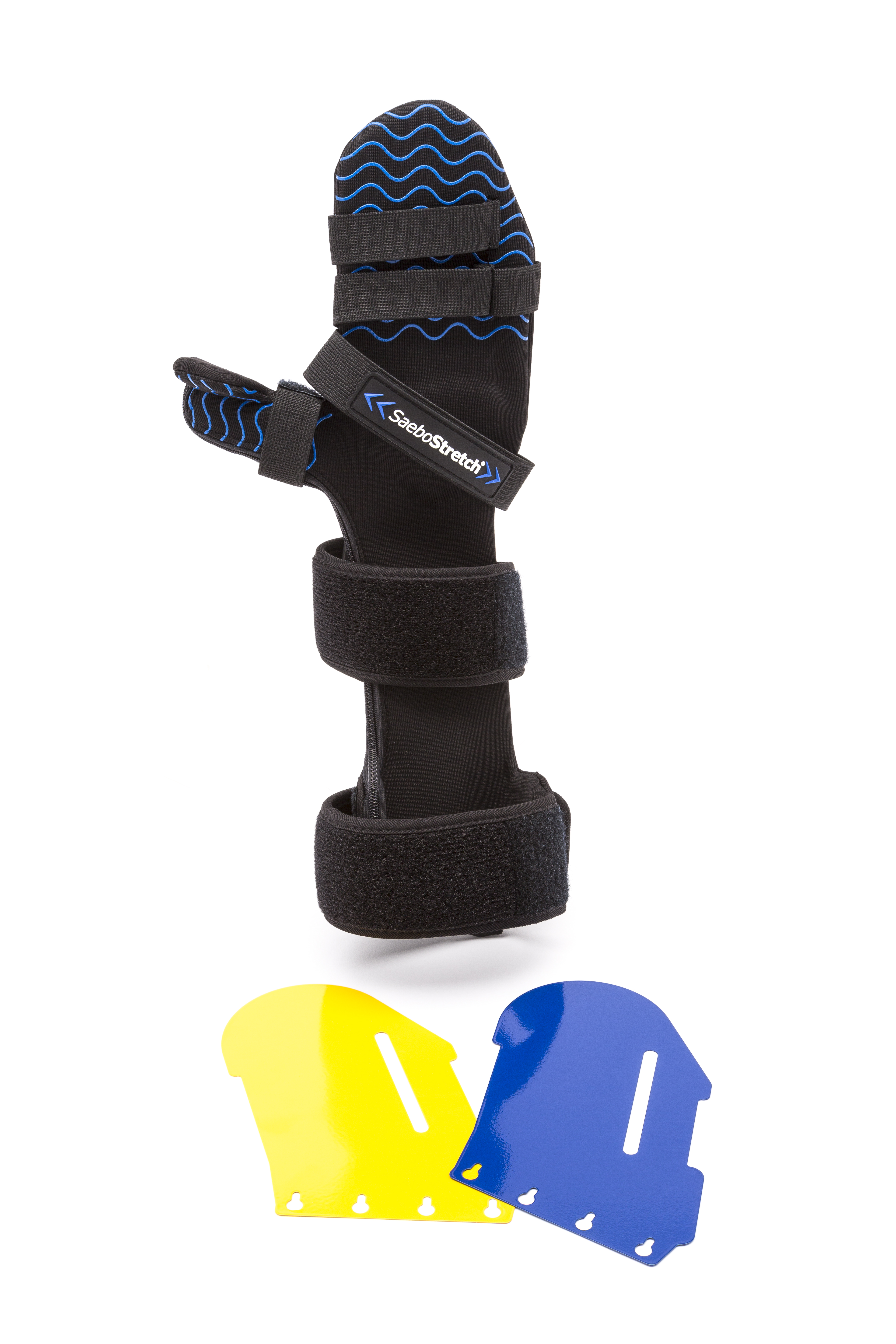 The SaeboStretch overcomes clinical concerns that can result from traditional hard static splints including joint damage, hypermobility, and contractures. This novel splint uses a revolutionary stretch technology, which allows the fingers to move through flexion caused by associated reactions and increased tone. Following relaxation, the fingers gradually return to the desired resting position.