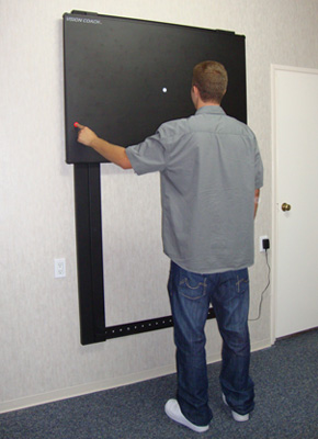 The Vision Coach is a dynamic, state-of-the-art interactive system designed to promote and enhance visual function, muscular coordination and neuromotor abilities. The large interactive light board measuring 50″ x 34″ and is attached to a counter weight wall mounted slider with 48″ of travel allowing for effortless height adjustment from floor to ceiling. No external connections are required, the USB port offers future program upgrades and data collection, and an Alphanumeric LED display positioned in the upper right corner shows programs selected, times, scores and late scores before and after each trial.